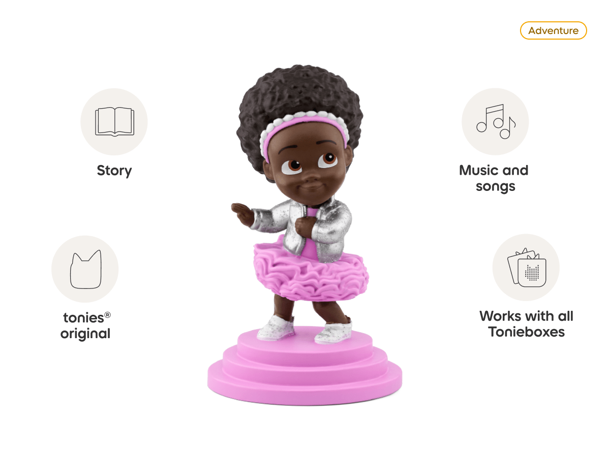 Join Qai Qai and her playful DJ companion Ruff Ruff on charming adventures. from magical gardens to fairy tales about discovering your true worth. Qai Qai’s quick wit and joyful spirit make every adventure unforgettable as young listeners dance along to uplifting songs like Queen Things. Dancing on the Moon. and Best Friend. This delightful tonie features six captivating stories and original hit songs celebrating confidence. friendship. and imagination.